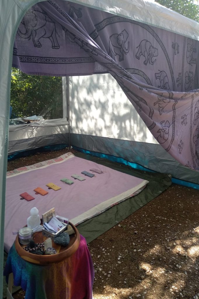 Nello splendido Ashram Solare di Tarzo (TV) incastonato in una lussureggiante cornice verde di colline e boschetti, abbiamo sistemato un gazebo per i trattamenti olistici e massaggi tantrici.